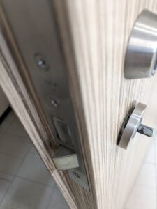マンションのオーナー様からの入居者入れ替わりに伴い鍵の交換をして欲しいとご依頼があり出動です。レバーハンドルのぐら付きがあるので修理もお願いしますとの事です。