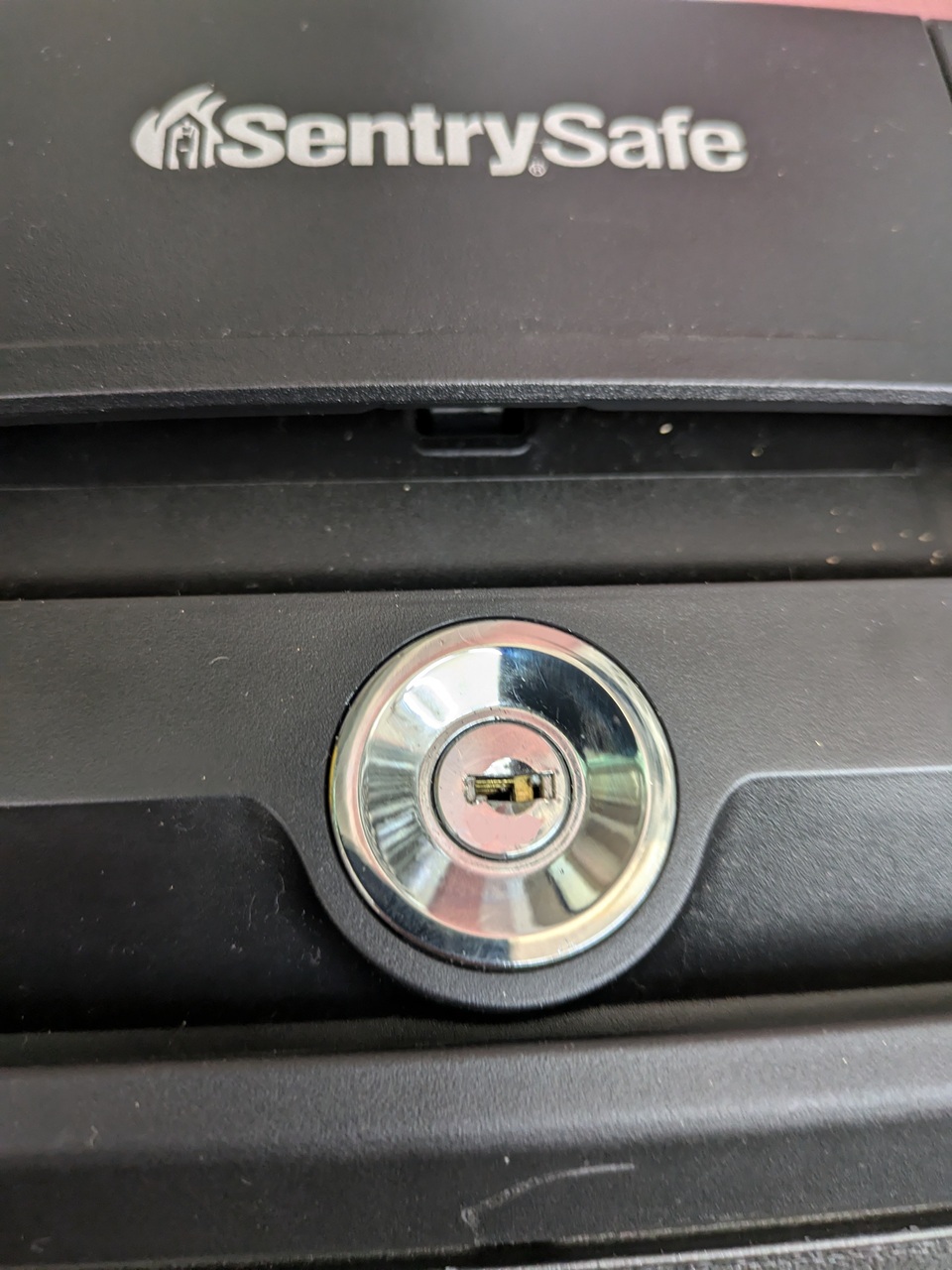 カギが無く開ける事が出来ない施錠された手提耐火金庫です。